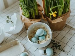 Dir steht eine vielfältige Auswahl an Materialien wie Zweige, Moos, Federn, Eier und weitere saisonale Dekoelemente zur Verfügung. So entsteht Schritt für Schritt ein individuelles Werkstück, das sich wunderbar als Tischdekoration, Türschmuck oder frühlingshafter Blickfang für dein Zuhause eignet.